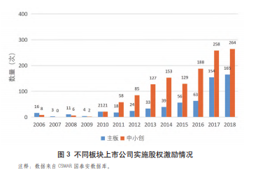 3. 股權(quán)激勵實施的不同上市板塊分布情況