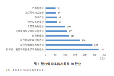 4. 股權(quán)激勵實施的不同行業(yè)分布情況