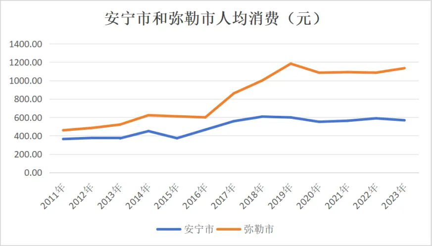 圖3:安寧市與彌勒市人均消費(fèi)對(duì)比