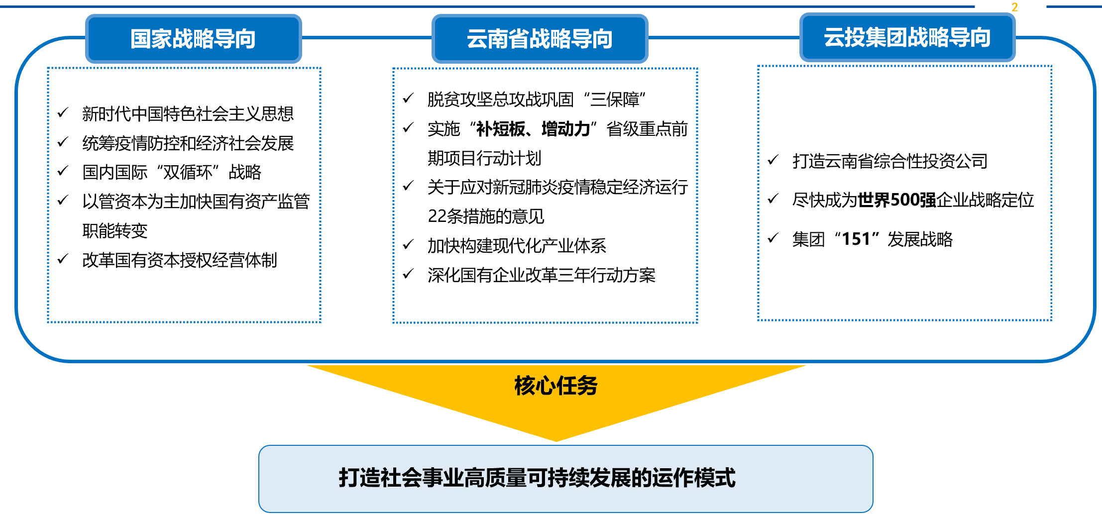 云發(fā)展是云投集團(tuán)實(shí)施大公益板塊戰(zhàn)略的重點(diǎn)企業(yè),成立于今年2月,注冊(cè)資金57億元,承擔(dān)的核心任務(wù):破解云南省教育衛(wèi)生補(bǔ)短板項(xiàng)目的政策障礙、資金風(fēng)險(xiǎn)、管理權(quán)責(zé)等問題;承接云南省社會(huì)事業(yè)政策項(xiàng)目,創(chuàng)新社會(huì)事業(yè)發(fā)展模式;兼顧社會(huì)效益與經(jīng)濟(jì)效益,實(shí)現(xiàn)可持續(xù)性發(fā)展。