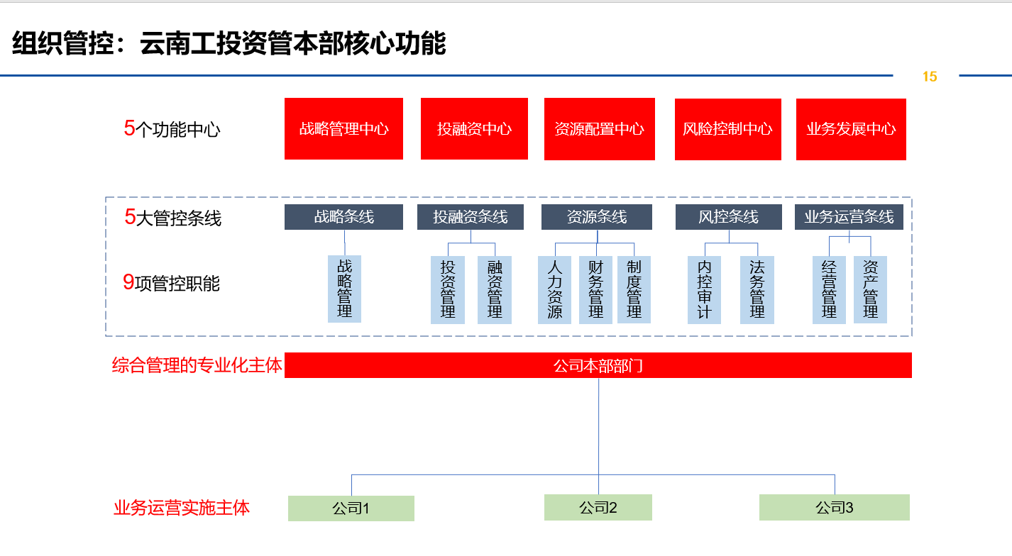 云南工投資產(chǎn)管理有限公司隸屬于云南省工業(yè)投資控股集團有限責任公司,是集團獨資控股的非金融資產(chǎn)管理公司。作為配合云南省國資委、工投集團優(yōu)化國企布局結構、深化國企國資改革的專門從事國有資產(chǎn)經(jīng)營與管理的企業(yè)化操作平臺,工投資管業(yè)務聚焦于資產(chǎn)經(jīng)營、股權管理和資本運作,是區(qū)域具有市場競爭力的資產(chǎn)經(jīng)營機構。