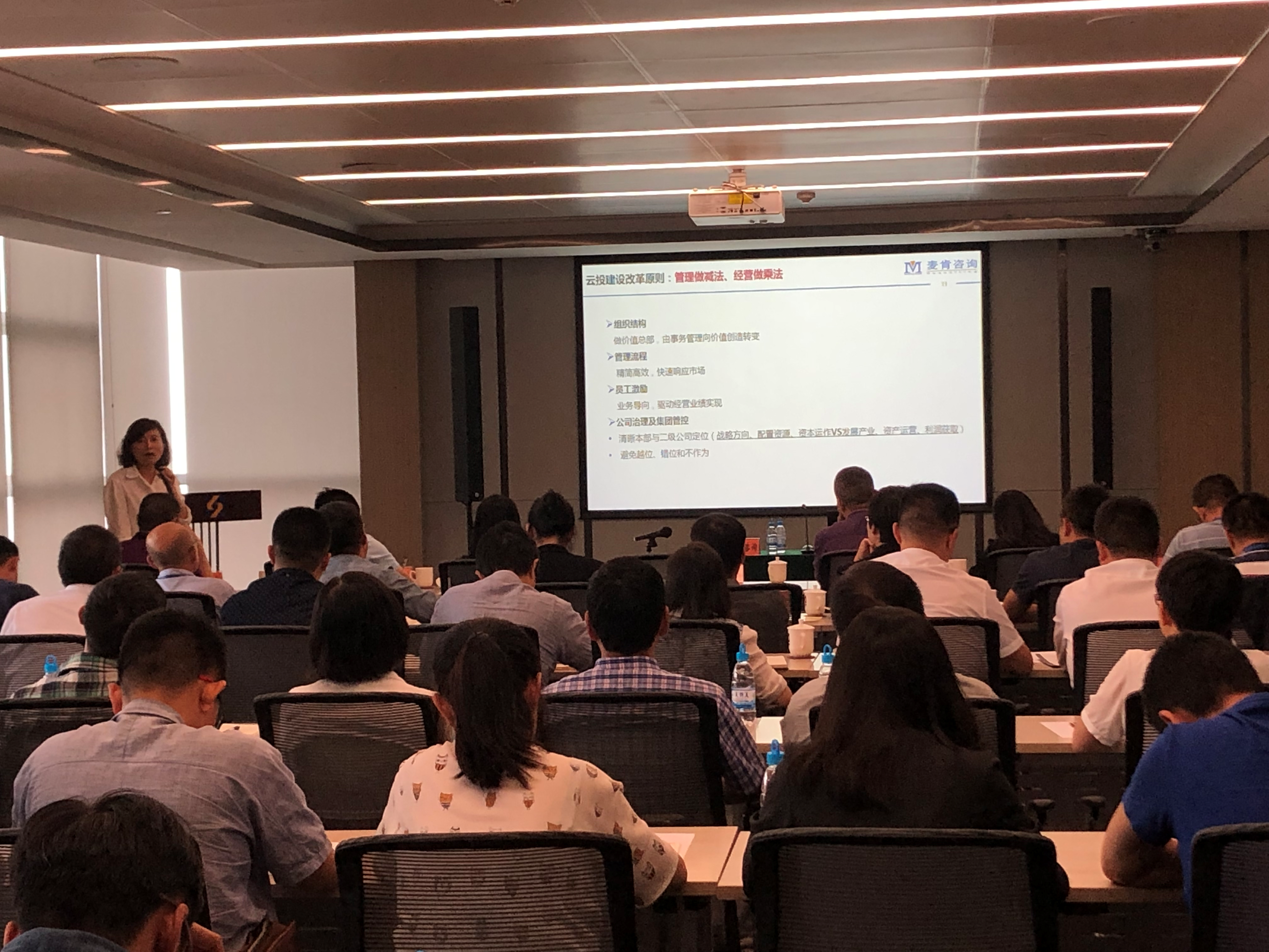 麥肯咨詢總經(jīng)理朱章女士進(jìn)行了云投建設(shè)組織管理體系優(yōu)化改革的分享,結(jié)合國(guó)務(wù)院國(guó)資委國(guó)企深化改革精神及云投集團(tuán)三項(xiàng)制度改革精神,云投建設(shè)深入貫徹落實(shí)黨的十九大、云投集團(tuán)關(guān)于人才工作的要求,積極踐行構(gòu)建符合現(xiàn)代企業(yè)發(fā)展要求的人力資源管理體系。2019年上半年云投建設(shè)改革初具成效:將各重點(diǎn)工作任務(wù)融入控股公司及部門經(jīng)營(yíng)目標(biāo)責(zé)任書和工作督辦單;并制定以6月30日為時(shí)間節(jié)點(diǎn)的重點(diǎn)工作考核實(shí)施方案;在改革過渡階段,推行業(yè)績(jī)導(dǎo)向機(jī)制,從上至下傳導(dǎo)壓力,確保各項(xiàng)重點(diǎn)問題解決任務(wù)及時(shí)完成。
